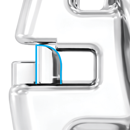 Unfailing door with reciprocal mechanism and audible opening and closing “click”, proven to last throughout treatment. Opening the bracket door has never been easier. Insert the Norris Exclusive “Triple Tool” horizontally into the door slot and rotate 90 degrees. The unique mechanism inside the door of the bracket allows the door to actually “glide open” and “glide closed” once the door travels 50% in either direction. This “assisted” opening and closing is the first and only one of its kind, and is another leap forward in PSL technology.